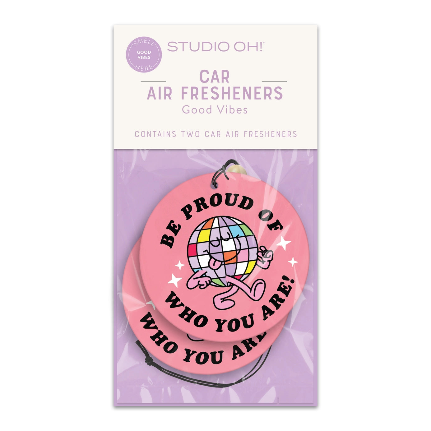 Make your drive time more pleasant with colorful car air fresheners from Studio Oh! These fragrance-infused designs help eliminate malodors and create long-lasting freshness in your vehicle. With two car air fresheners per package, you can mix and match designs between cars or keep a spare tucked in your glove box.