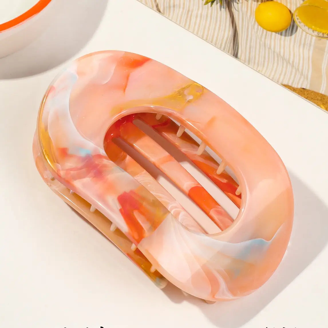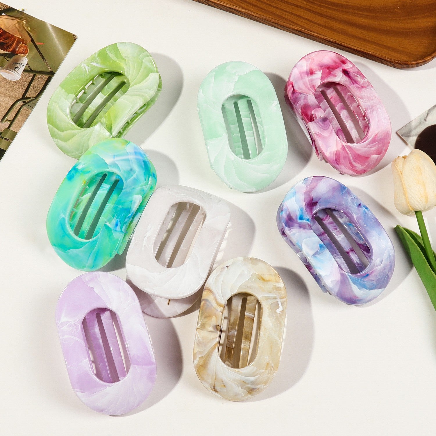 Add a pop of color and modern style to your look with our Rounded Flat Hair Clips. Featuring a sleek oval design and stunning marbled finish, these clips blend function and fashion perfectly.