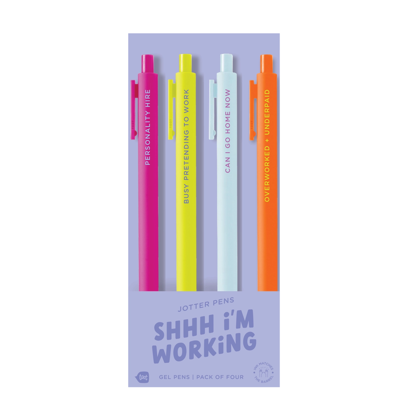 Bright colors and a lot of attitude-- The soft-touch barrel surface and fine-point gel tip will make this pen your new favorite. It's definitely doodle bug approved. And guess what? The gel ink matches the pen color! (Navy, Gold, White, Grey, and Metallic pens have black ink..) So whether you're signing official documents or doodling your life away, your thoughts will shine bright.